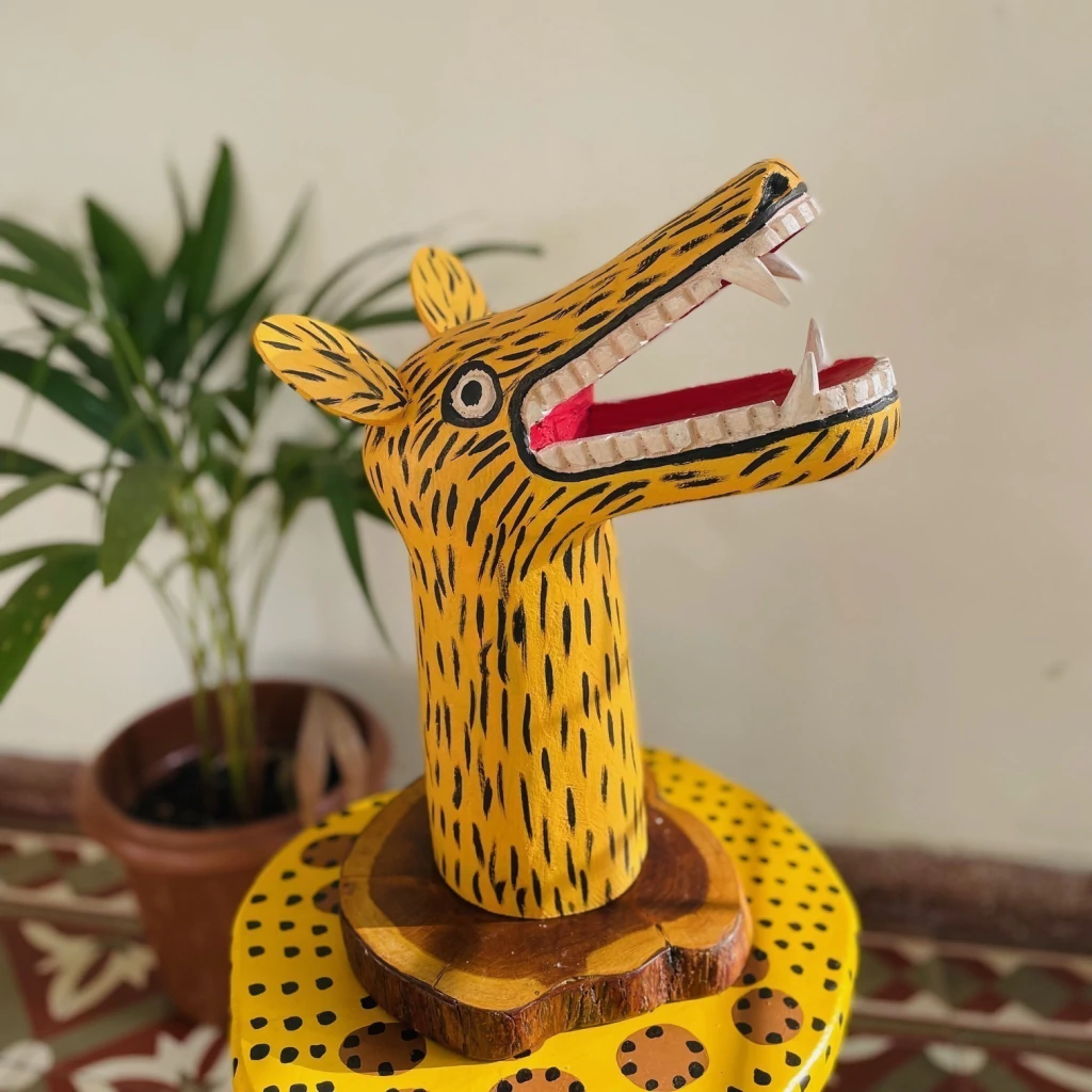 Cabeça em madeira produzida por Cícero Ferreira no Cariri cearense.